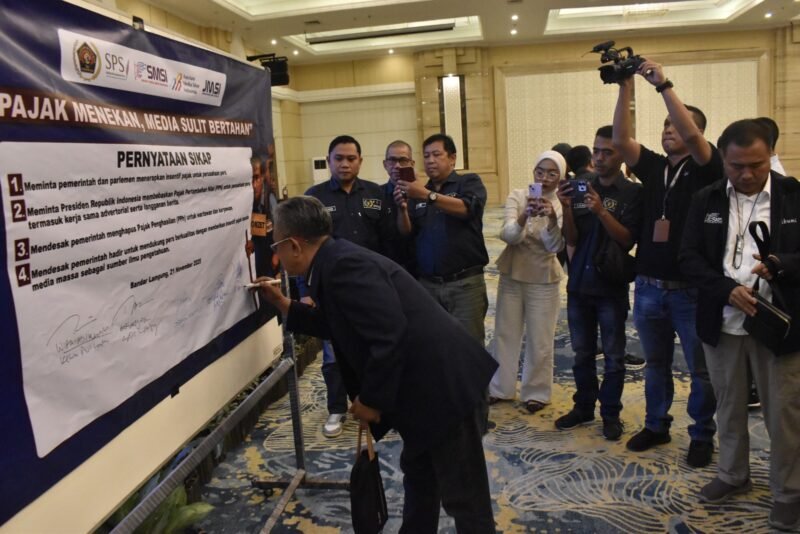 Ahmad Novriwan juga sepakat dan menandatangani sikap pernyataan yang dibuat PWI Lampung, sebagai komitmen JMSI