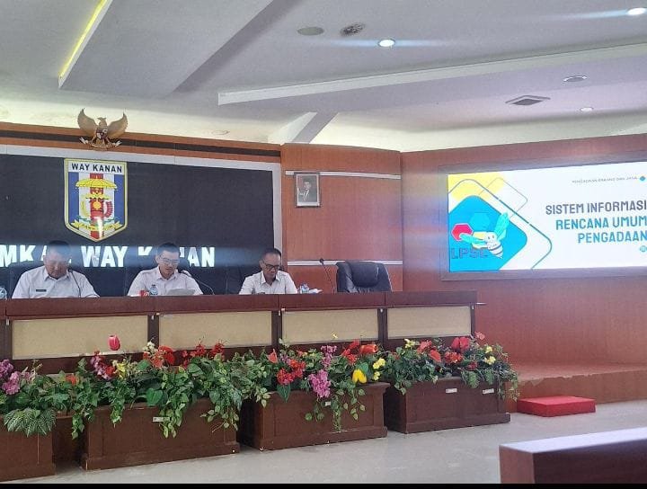 WAYKANAN–Asisten 2 Setdakab Way Kanan Dr. Arie Anthony Thamrin S.S T.P, MM, membuka sosialisasi SIRUP (Sistem Informasi Rencana Umum Pengadaan) adalah platform berbasis web dari LKPP (Lembaga Kebijakan Pengadaan Barang/Jasa Pemerintah), bertempat di ruang rapat Utama Lantai 2 Kantor Bupati setempat Rabu 13/01/2025).