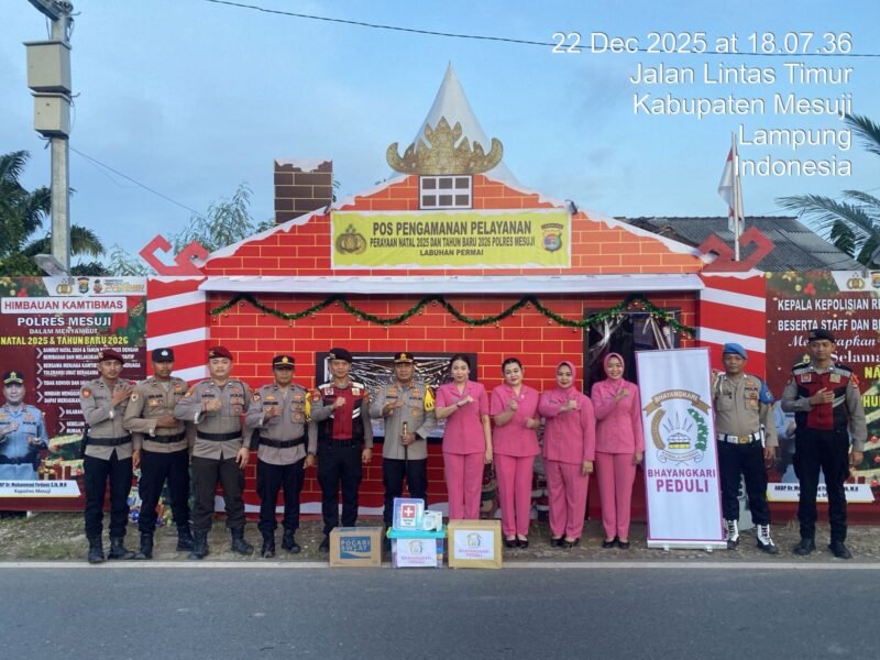 MESUJI – Sebagai wujud perhatian dan kepedulian seorang pimpinan terhadap anggota, Kapolres Mesuji bersama Ketua Bhayangkari Mesuji dan para PJU serta pengurus Bhayangkari membagikan bingkisan kepada petugas Pos Nataru di Wilayah Hukum Polres Mesuji, senin (22/12/25).