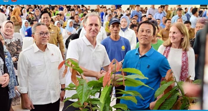 Pemerintah pusat melalui Menteri Koordinator (Menko) Bidang Pangan, Zulkifli Hasan, menyerahkan 7.000 bibit kopi dan kakao kepada para petani sebagai akselerasi penerapan Smart Agroforestry di daerah tersebut.