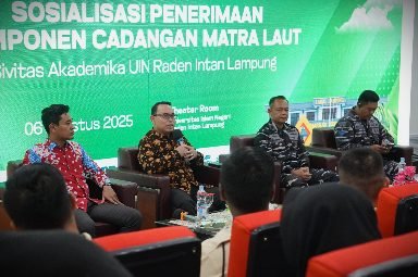 BANDAR LAMPUNG – Universitas Islam Negeri (UIN) Raden Intan Lampung menunjukkan komitmennya dalam mendukung program bela negara dengan menyelenggarakan Sosialisasi Penerimaan Komponen Cadangan (Komcad) Matra Laut yang diinisiasi oleh Pangkalan TNI Angkatan Laut (Lanal) Lampung. Kegiatan ini berlangsung di Ruang Teater lantai 2 Gedung Academic & Research Center UIN RIL, Rabu (6/8/2025).