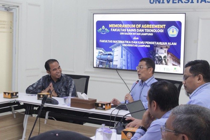 BANDARLAMPUNG-Fakultas Sains dan Teknologi (FST) UIN Raden Intan Lampung (RIL) membangun kerja sama dengan FMIPA Universitas Lampung dan Fakultas Sains ITERA Bandar Lampung. Fokus kerja sama ini adalah penguatan pendidikan, penelitian, dan pengabdian kepada masyarakat di bidang sains dan teknologi.