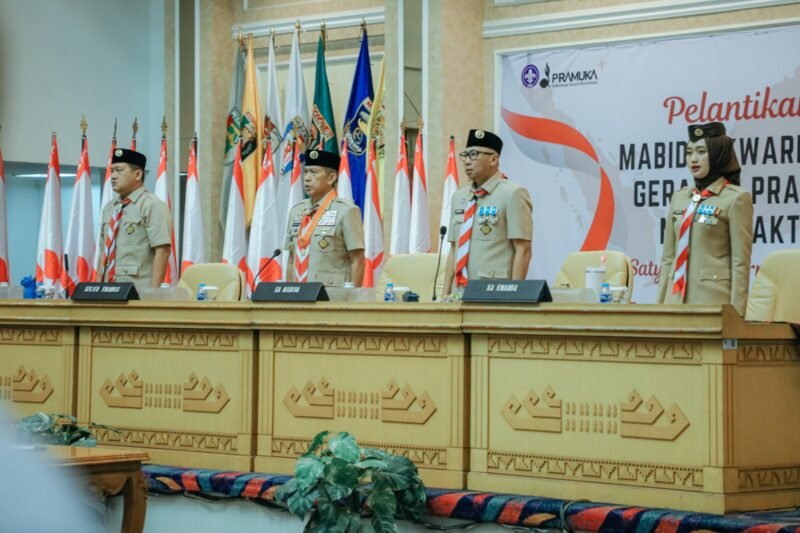 BANDARLAMPUNG —– Gubernur Lampung Rahmat Mirzani Djausal selaku Ketua Mabida Gerakan Pramuka Kwarda Lampung melantik Jihan Nurlela sebagai Ketua Kwarda Lampung dan pengurus Kwarda Pramuka Lampung periode 2025-2030, di Balai Keratun, Komplek Dinas Kantor Gubernur, Bandarlampung, Senin (1/12/2025).