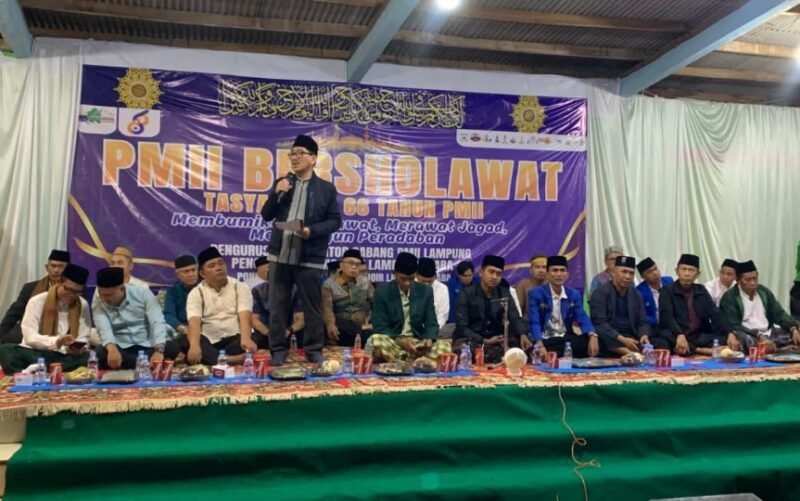 LAMPUNG UTARA – Peringatan Hari Lahir (Harlah) ke-66 Pergerakan Mahasiswa Islam Indonesia di Kabupaten Lampung Utara berlangsung khidmat melalui gelaran PMII Bersholawat yang dipusatkan di Pondok Pesantren Daarul Khoir, Sabtu 25 April 2026 malam.