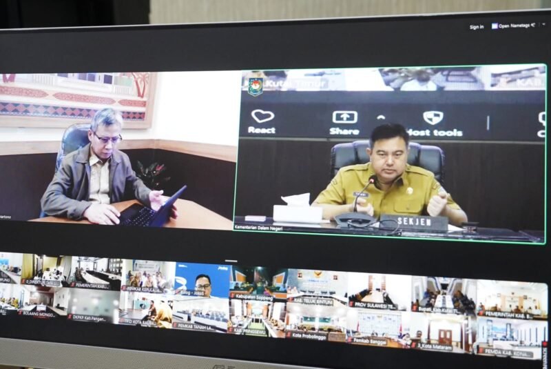 Rapat koordinasi tersebut diikuti Staf Ahli Gubernur Lampung Bidang Perekonomian dan Pembangunan, Bani Ispriyanto, dari Ruang Command Center Lantai 2 Dinas Kominfotik Provinsi Lampung, dan dipimpin oleh Sekretaris Jenderal Kementerian Dalam Negeri, Tomsi Tohir, Senin (16/3/2026)