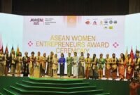 Perancang busana asal Lampung, Rita Anomsari meraih penghargaan Asean Women Enterpreuner Netwoek (Awen) di Kamboja, pada Jumat (21/11). Penghargaan Awen diberikan kepada pengusaha-pengusaha perempuan…