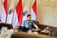 BANDAR LAMPUNG — Gubernur Lampung Rahmat Mirzani Djausal, Wakil Gubernur Jihan Nurlela, unsur Forkopimda Provinsi Lampung, pimpinan dan anggota DPRD Provinsi Lampung, mengikuti Rapat…