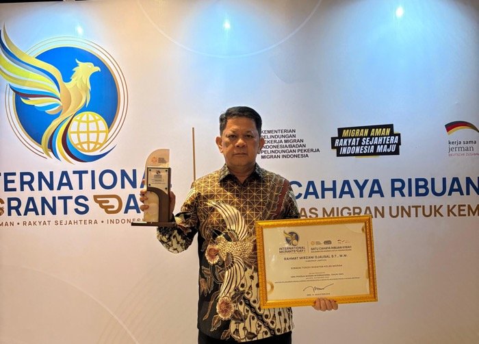 JAKARTA-Gubernur Lampung, Rahmat Mirzani Djausal, menerima penghargaan dari Kementerian Pelindungan Pekerja Migran Indonesia (KP2MI) pada Hari Pekerja Migran Internasional (HPMI) 2025. Penghargaan ini diberikan atas dedikasinya dalam memperkuat tata kelola penempatan dan pelindungan pekerja migran Indonesia, khususnya dari Provinsi Lampung.