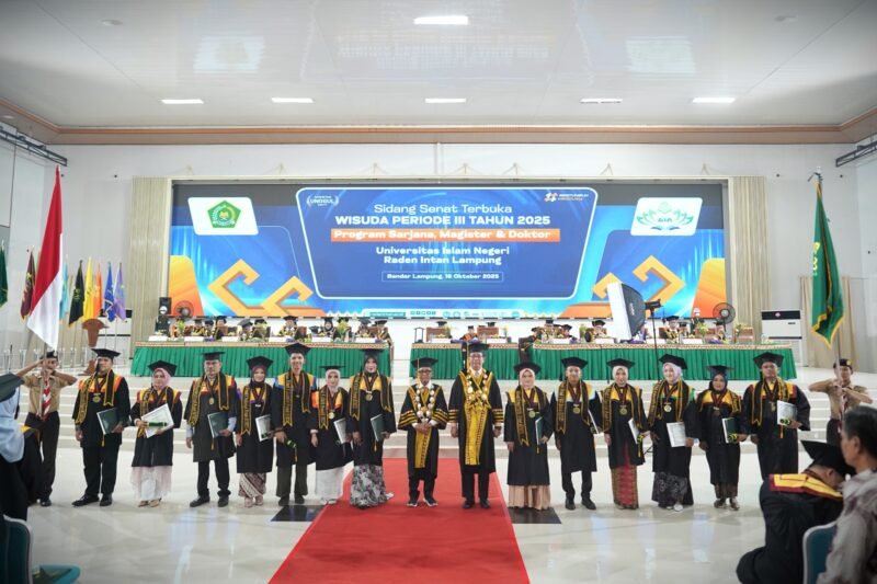 BANDAR LAMPUNG – Universitas Islam Negeri (UIN) Raden Intan Lampung melaksanakan Sidang Senat Terbuka Wisuda Sarjana dan Pascasarjana Periode III Tahun 2025 yang meluluskan 1.587 wisudawan. Kegiatan yang digelar di Gedung Serbaguna KH Ahmad Hanafiah ini dipimpin Ketua Senat Prof. Dr. Idham Khalid, M.Ag., dan disiarkan langsung melalui kanal YouTube UIN RIL.