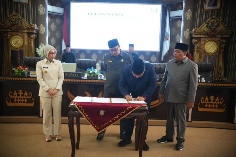 Dalam penandatangan yang dilakukan langsung Bupati Way Kanan Ayu Asalasiyah, dan Ketua DPRD Way Kanan Rial Kalbadi, Wakil Ketua 1 Adinata SH, Wakil Ketua 2 Bambang Irawan SM, dengan disaksikan oleh para peserta Rapat Paripurna DPRD Way Kanan .