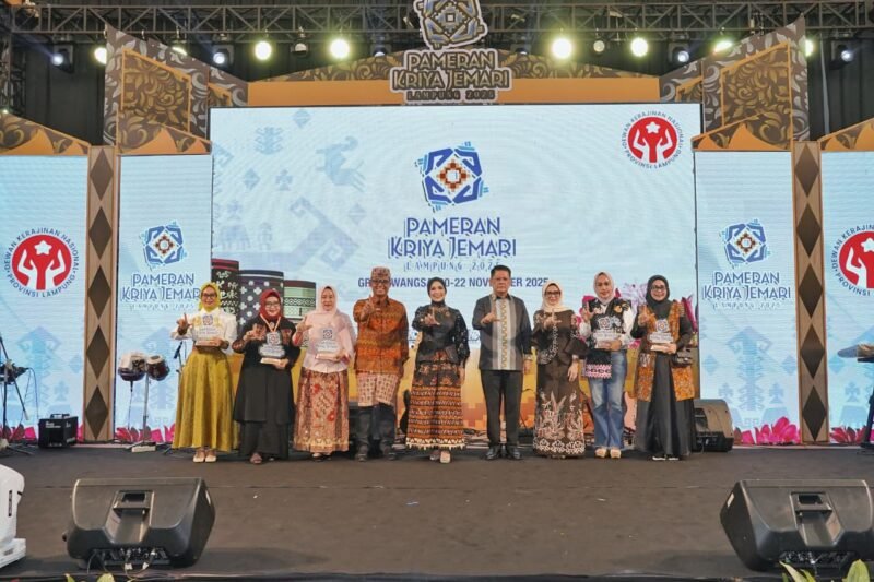 BANDARLAMPUNG — Pemerintah Provinsi Lampung bersama Dewan Kerajinan Nasional Daerah (Dekranasda) Provinsi Lampung sukses menggelar Pameran Kriya Jemari 2025 selama tiga hari di Gedung Graha Wangsa, Bandar Lampung, 20–22 November 2025. Penutupan pameran dilakukan oleh Asisten Pemerintahan dan Kesra Setda Provinsi Lampung, M. Firsada, mewakili Gubernur Lampung Rahmat Mirzani Djausal, Sabtu (22/11/2025).