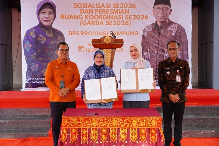Kepala BPS RI Amalia Adininggar Widyasanti menyambut baik penandatanganan MoU DTSEN dan memaparkan sejumlah indikator ekonomi Lampung. Kepala BPS Lampung Ahmadriswan Nasution menegaskan bahwa Sensus Ekonomi 2026 akan memotret struktur ekonomi Lampung secara komprehensif.[]