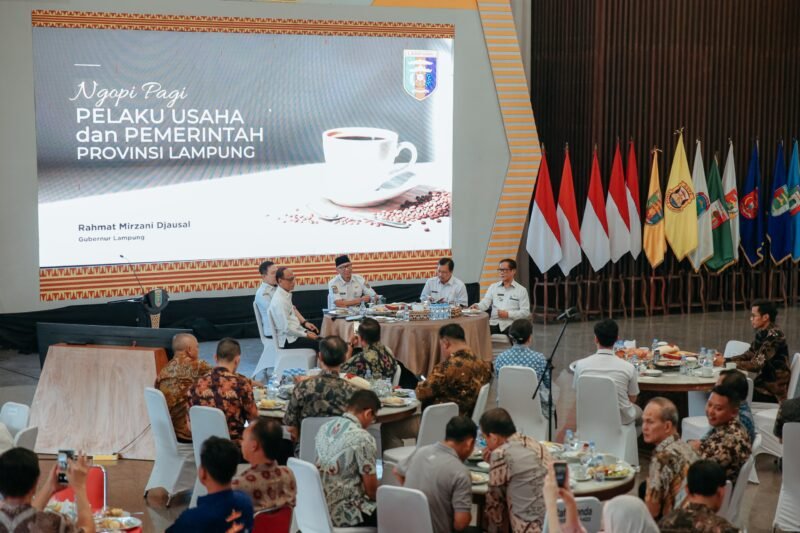 Hal tersebut disampaikan Gubernur Lampung Rahmat Mirzani Djausal dalam Acara Ngopi Pagi Pelaku Usaha dan Pemerintah Provinsi Lampung, yang berlangsung di Mahan Agung, Bandar Lampung, Rabu (26/11/2025). Kegiatan ini sebagai forum silaturahmi, dialog, dan penyampaian arah kebijakan pembangunan daerah kepada kalangan dunia usaha.