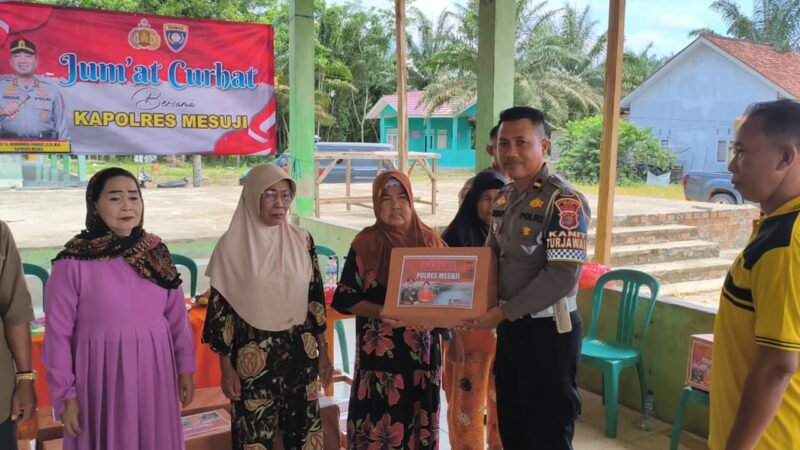 MESUJI – Jajaran Polres Mesuji, Polda Lampung, melaksanakan kegiatan Jumat Curhat dan membagikan 30 paket sembako di Desa Talang batu, Kecamatan Mesuji Timur, Kabupaten Mesuji, jumat (07/11/25).