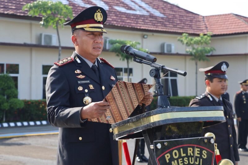 MESUJI – Jajaran Polres Mesuji, Polda Lampung, melaksanakan Upacara Peringati Hari Kesaktian Pancasila dengan Tema “Pancasila Perekat Bangsa Menuju Indonesia Raya”. Bertempat di Lapangan Apel Mapolres setempat, Desa Wira Bangun, Kecamatan Simpang Pematang, Rabu (01/10/25).