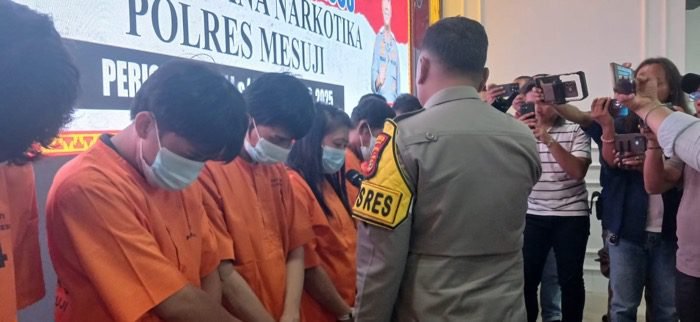 Kapolres Mesuji AKBP. Dr. Firdaus. S.IK.MH., yang didampingi Wakapolres, Kabag Ops, Kasat Narkoba dan Kasi Humas mengatakan, penangkapam para tersangka penyalahgunaan Narkotika tersebut dilakukan sejak 22 Juli hingga 7 Agutus 2025 lalu.
