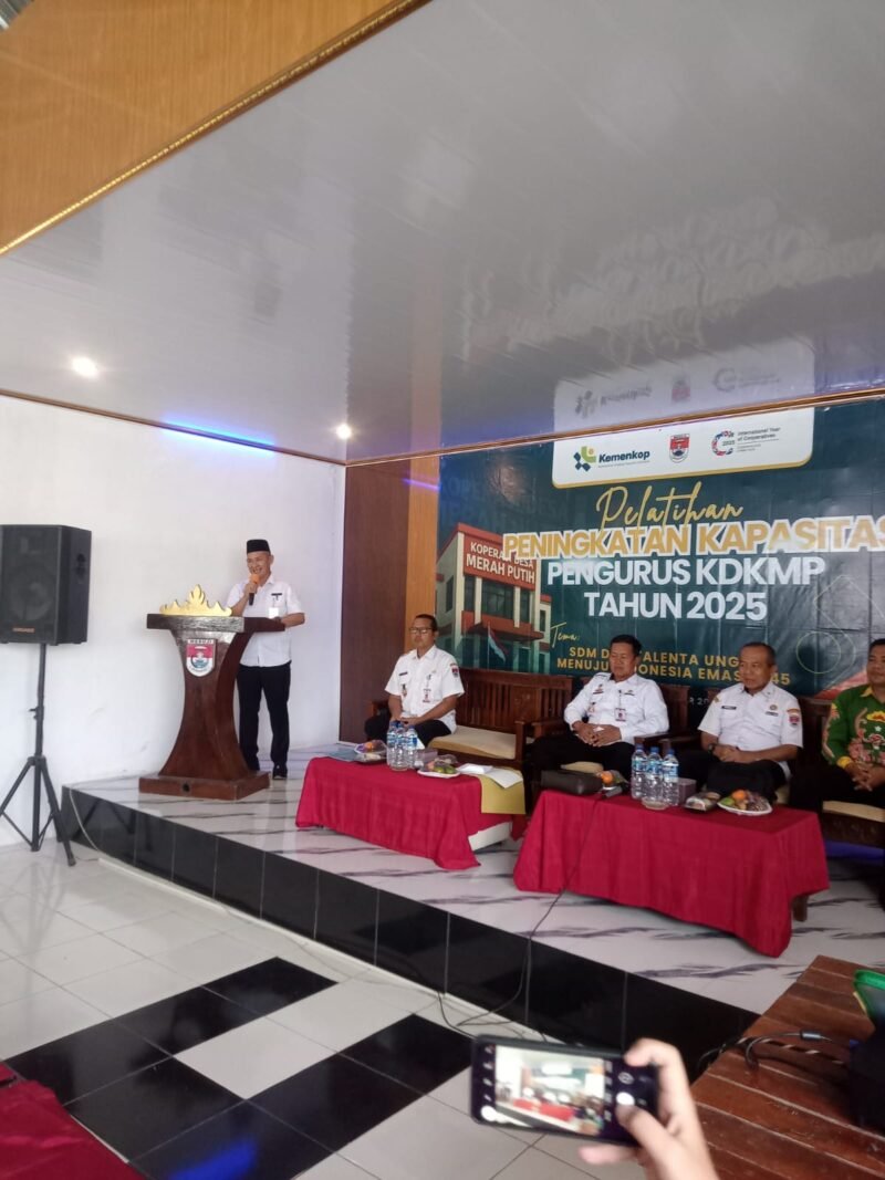 MESUJI – Ratusan pengurus Koperasi Desa Merah Putih (Kopdes – MP), se-Kabupaten Mesuji, mengikuti kegiatan pelatihan peningkatan kompetensi sumber daya manusia (SDM) Koperasi Desa/Kelurahan Merah Putih. Bupati Mesuji Hj. Elfianah. SE., yang diwakili oleh Staf Ahli Bupati Bidang Ekonomi pembangunan Sakroni membuka acara pelatihan Kopdes MP, di aula rumah makan Hambakung & Resto, rabu (5/11/25).