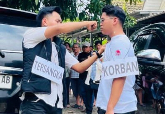 REKONSTRUKSI sebanyak 24 adegan yang disampaikan korban ada adegan, 2 kali tersangka Handi memukul korban penganiayaan Verrel bahkan korban juga motornya disenggol hingga motor jatuh yang digelar pada Rabu ( 4/2/2026) di perumahan Bumi Asri Jalan Angsana V nomor 158 Kedamaian Bandarlampung pukul 11.00 WIB.