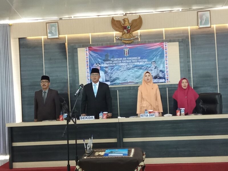 Sekda Way Kanan, Machiavelli Herman Tarmizi, melantik 4 pejabat eselon 2 di Ruang Rapat Utama lantai 3 Buay Pemuka Pangeran Ilir, Senin (12-01-2025). Pejabat yang dilantik adalah: