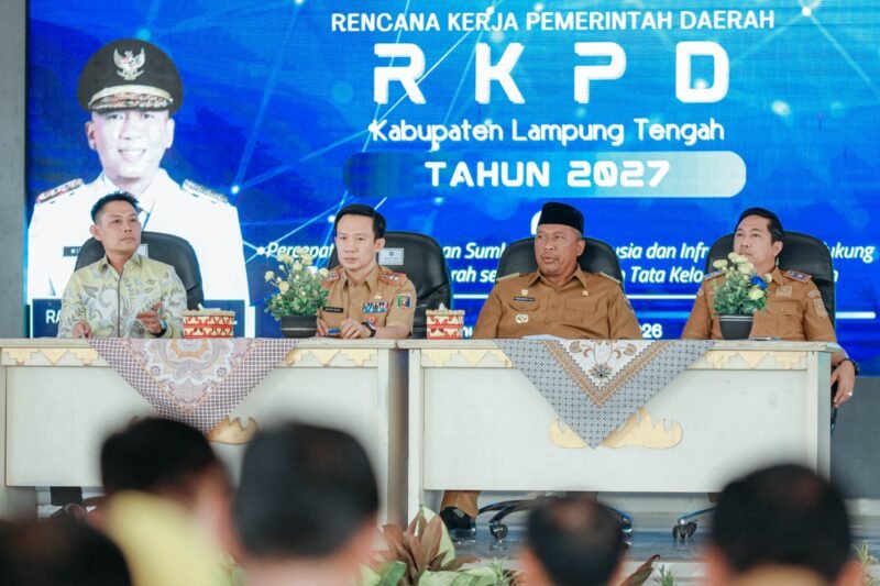 LAMPUNG TENGAH — Gubernur Lampung Rahmat Mirzani Djausal, diwakili Sekretaris Daerah Provinsi Lampung Marindo Kurniawan, membuka Musyawarah Perencanaan Pembangunan (Musrenbang) Rencana Kerja Pemerintah Daerah (RKPD) Kabupaten Lampung Tengah Tahun 2027, di Gedung Sesat Agung Nuwo Balak, Gunung Sugih, Lampung Tengah, Selasa (10/3/2026).