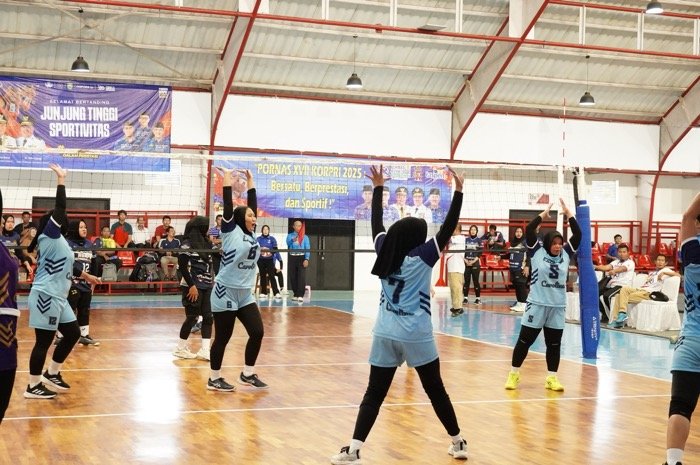 PALEMBANG-Tim Bola Voli Putri Provinsi Lampung semakin menunjukkan performa gemilang. Setelah tim akan Bangka Belitung (Babel) Lampung lolos ke perempatf final di ajang ajang Pekan Olahraga Nasional Korps Pegawai Republik Indonesia (Pornas Korpri) XVII yang berlangsung di GOR Aneka Pertamina Plaju, Palembang, Kamis (9/10).