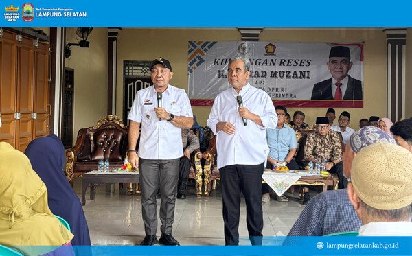LAMPUNG SELATAN – Wakil Bupati Lampung Selatan, M. Syaiful Anwar, mendampingi Ketua MPR RI, Ahmad Muzani, dalam kunjungan kerja ke daerah pemilihan (Kundapil) di Desa Candimas, Kecamatan Natar, Jumat (26/9/2025).